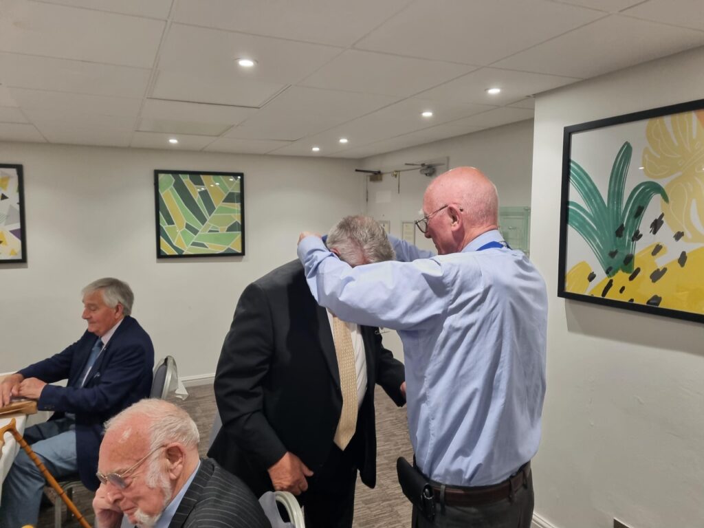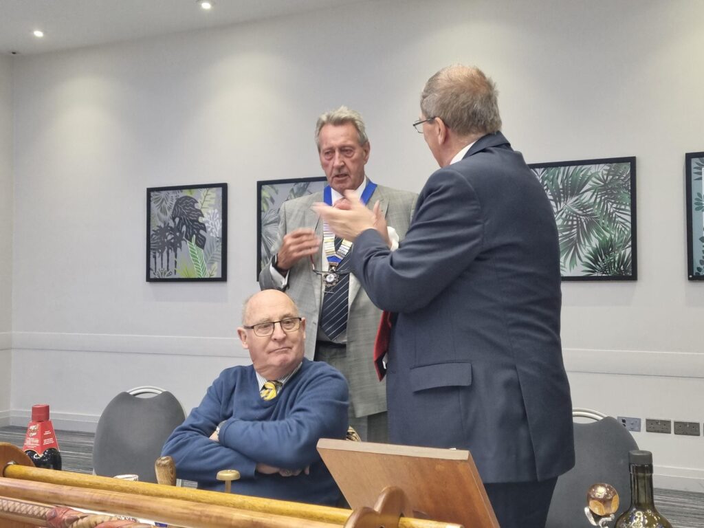 Jim Simpson being presented with the Presidents Jewel by Nick BatesJim Simpson being presented with the Presidents Jewel by Nick BatesJim Simpson 2024/25 Chairman with immediate Past Chairman, Nick BatesJim Simpson 2024/25 Chairman with immediate Past Chairman, Nick BatesJim Simpson 2024/25 Chairman with immediate Past Chairman, Nick BatesJim Simpson presenting Vice Chairman Mick Lawrence, with his Vice Chairman’s JewelJim Simpson presenting Vice Chairman Mick Lawrence, with his Vice Chairman’s JeweJim Simpson still in shock that Mick Lawrence still has his own hair.Past Chairman Jim Pike presenting Nick Bates with his Chairman’s JewelJim Simpson being presented with the Vice Chairman Jewel by Nick Bates.